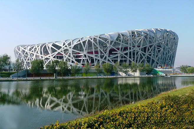 體育場由雅克·赫爾佐格、德梅隆、艾未未以及李興剛等設(shè)計,由北京城建集團(tuán)負(fù)責(zé)施工。體育場的形態(tài)如同孕育生命的“巢”和搖籃,寄托著人類對未來的希望。設(shè)計者們對這個場館沒有做任何多余的處理,把結(jié)構(gòu)暴露在外,因而自然形成了建筑的外觀。